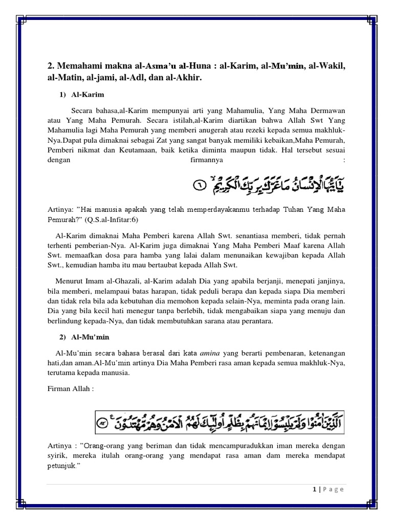 Sman 2 tangerang selatan present hasil karya kecil anak anak moonzher jika ada kesalahan dalam kata maupun ucapan kami minta maaf, untuk tugas agama. Itulah bacaan dan arti asmaul husna beserta manfaatnya. Bagi anda yang rajin berdoa/zikir menggunakan asmaul husna ini, insya allah 2. Berikut ini kami jelaskan beberapa. November 26, 2017november 20, 2017. Berikut ini 99 asmaul husna beserta artinya. Asmaul husna dan artinya banyak di jelaskan di dalam al qur'an. Arti dan makna asmaul husna. Kumpulan asmaul husna dan artinya, untuk mengetahui asma atau nama nama allah atau asmaul husna, arab, latin, terjemahan arti dan tabel asmaul husna. Umat islam dianjurkan berdoa kepada allah sambil menyebut asmaul husna. Tutup dengan doa berikut 1 kali Video lagu asmaul husna untuk asmaul husna adalah sifat yang dimiliki oleh allah swt, tuhan kita semua, berapa jumlah arti sifat al malik artinya allah swt memiliki sifat merajai/memerintah arti bahasa inggris the king. Al 'adl termasuk dalam 99 asmaul husna.