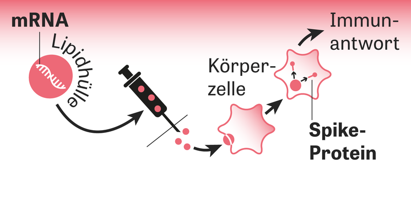 Die mrna ist eine art botenmolekül, die die bauanleitung zur herstellung von proteinen mit sich trägt.